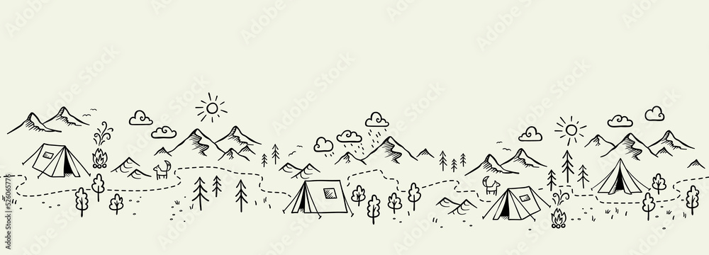 The watermark will not be included on Wall mural.: Cute hand drawn vector camping seamless pattern, great for textiles, banners, wallpapers - doodle te