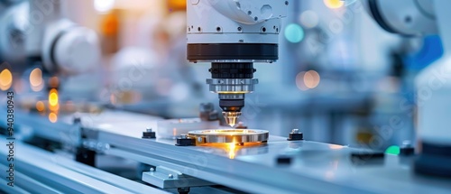The watermark will not be included on Wall mural.: Cutting-edge precision: macro view of advanced manufacturing robotic arms