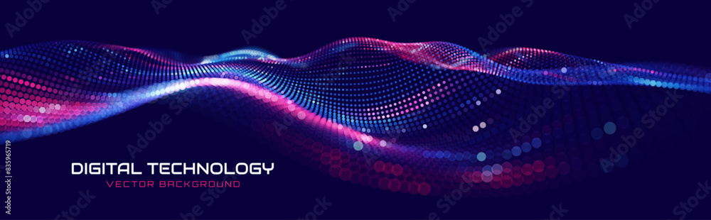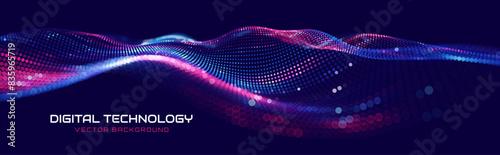 Wall mural cyber big data flow particles bokeh. digital neural network. concept of ai artificial intelligence t