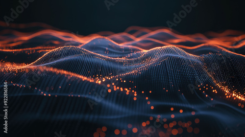 Wall mural cyber data waves in digital space, network surface abstract background. dots and lights of secure te - Wall murals Wall mural cyber data waves in digital space, network surface abstract background. dots and lights of secure te - Wall murals