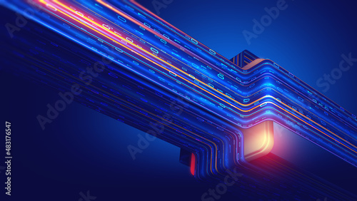 Wall mural cyber hi-tech. futuristic big data stream. motion of digital data flow. data transmission channel 3d