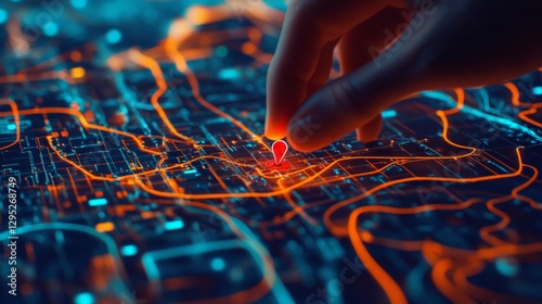 The watermark will not be included on Wall mural.: Cyber navigation interface with gps location pin, glowing transport routes, and ai-powered mapping –