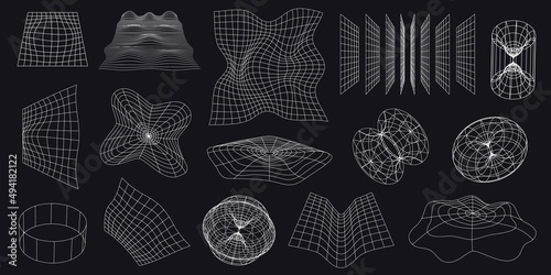 Wall mural cyber neo futuristic grids, 3d mesh objects and shapes. wireframe wavy geometric perspective plane.