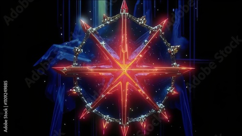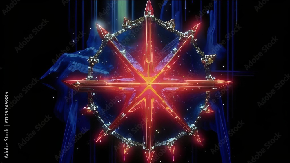 The watermark will not be included on Wall mural.: Cyber neon tunnel - futuristic interface pattern - glowing hi technology texture - abstract motion back
