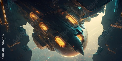 Wall mural : Cyber punk spaceship seen from above - glorious generative ai -