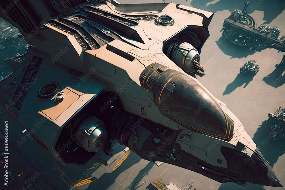 Wall mural : Cyber punk spaceship seen from above - glorious generative ai -