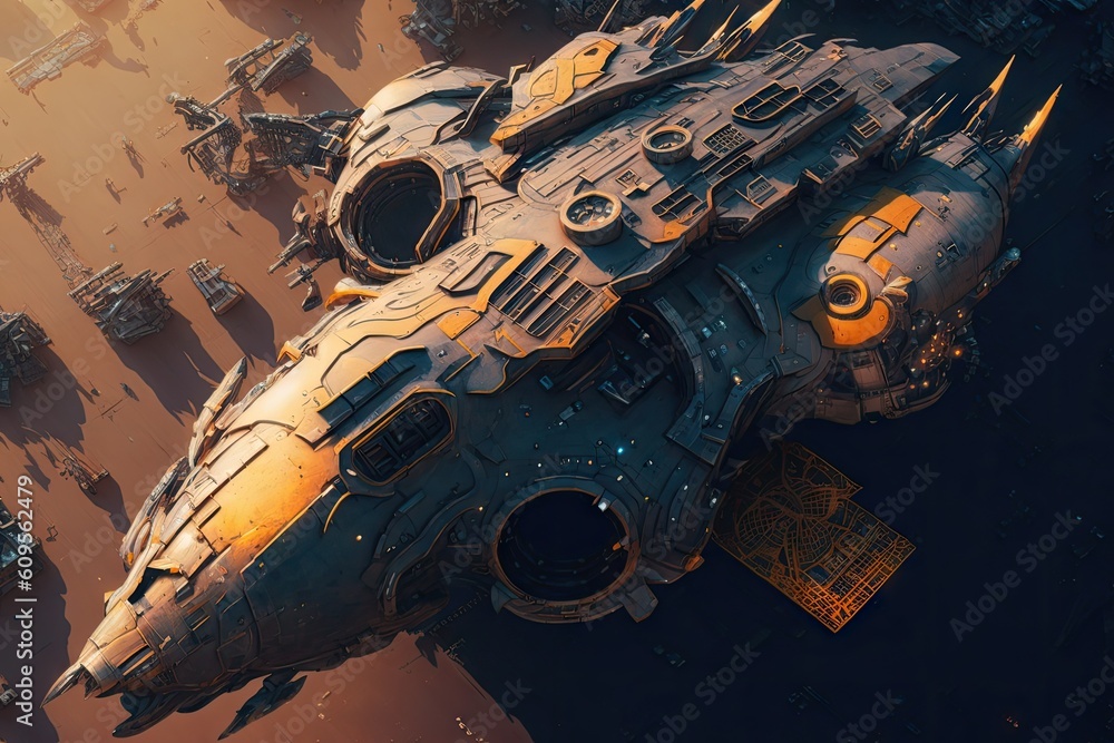 Wall mural cyber punk spaceship seen from above. glorious generative ai.