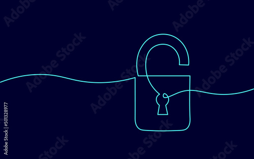 Wall mural cyber safety padlock one line art. continuous line internet security lock information privacy networ