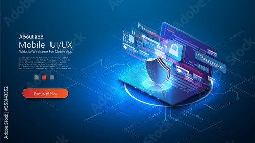 Wall mural cyber security, data protection, cyberattacks concept on blue background. database security software
