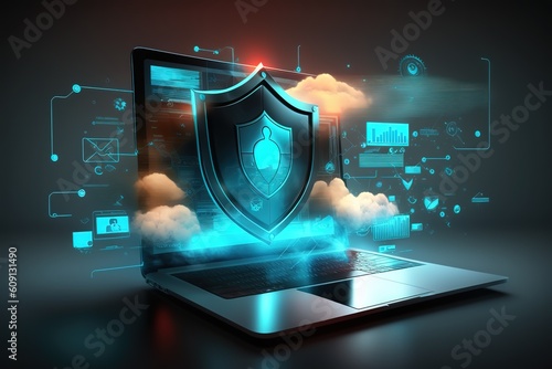 Wall mural cyber security, data protection, cyberattacks concept on blue background. database security software - Wall murals Wall mural cyber security, data protection, cyberattacks concept on blue background. database security software - Wall murals
