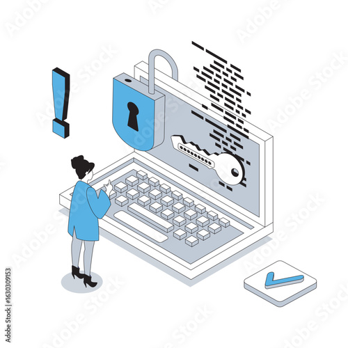 Wall mural cyber security 3d isometric concept with isometry people design for web. woman using password lock a - Wall murals Wall mural cyber security 3d isometric concept with isometry people design for web. woman using password lock a - Wall murals