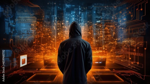 The watermark will not be included on Wall mural.: Cyber security and bit hacker network and power energy and, encryption and cyber punk
