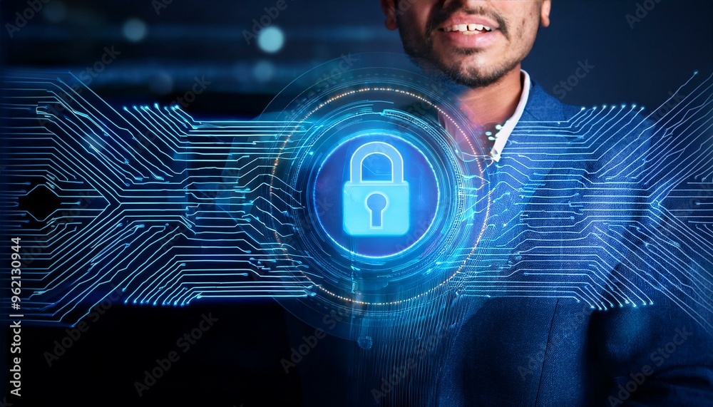 Wall mural : Cyber security and data protection concept with digital lock symbol, internet network security for p