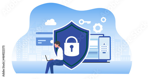 Wall mural cyber security and data protection concept. businessman secure data management and protect data from - Wall murals Wall mural cyber security and data protection concept. businessman secure data management and protect data from - Wall murals