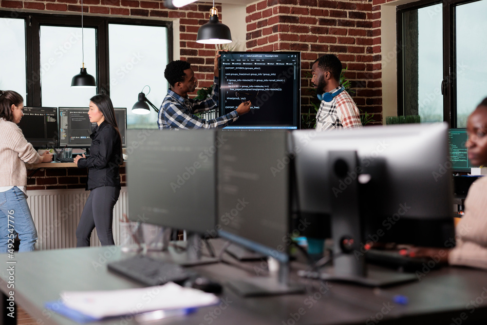 Wall mural : Cyber security company developers encrypting cloud processing data system using blockchain technolog