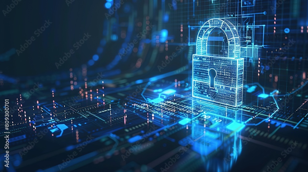 Wall mural cyber security concept. digital padlock on abstract cyber security with binary code - Wall murals Wall mural cyber security concept. digital padlock on abstract cyber security with binary code - Wall murals