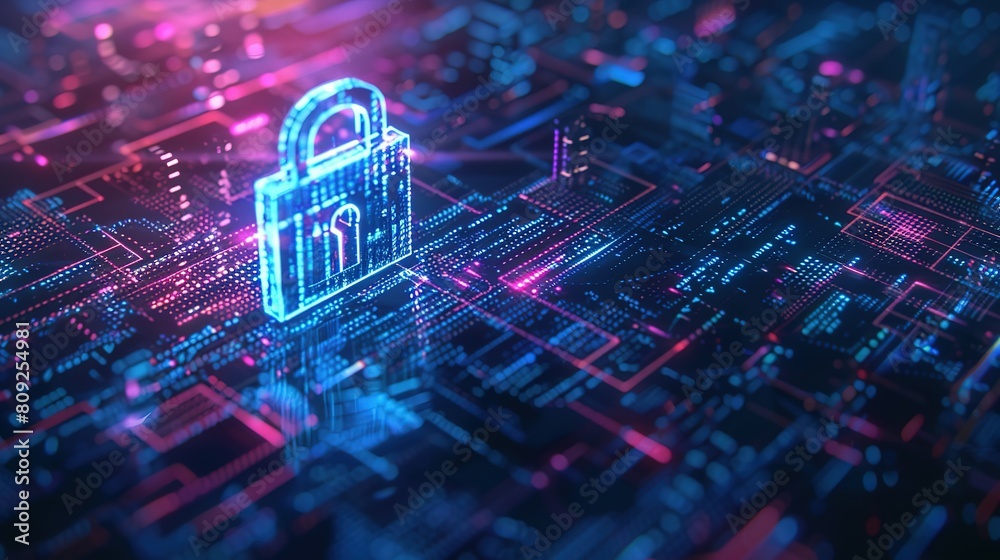 Wall mural : Cyber security concept - digital padlock on abstract cyber security with binary code