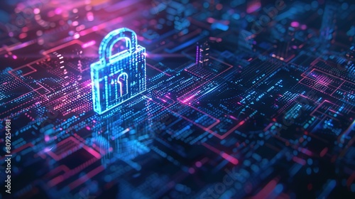 Wall mural cyber security concept. digital padlock on abstract cyber security with binary code