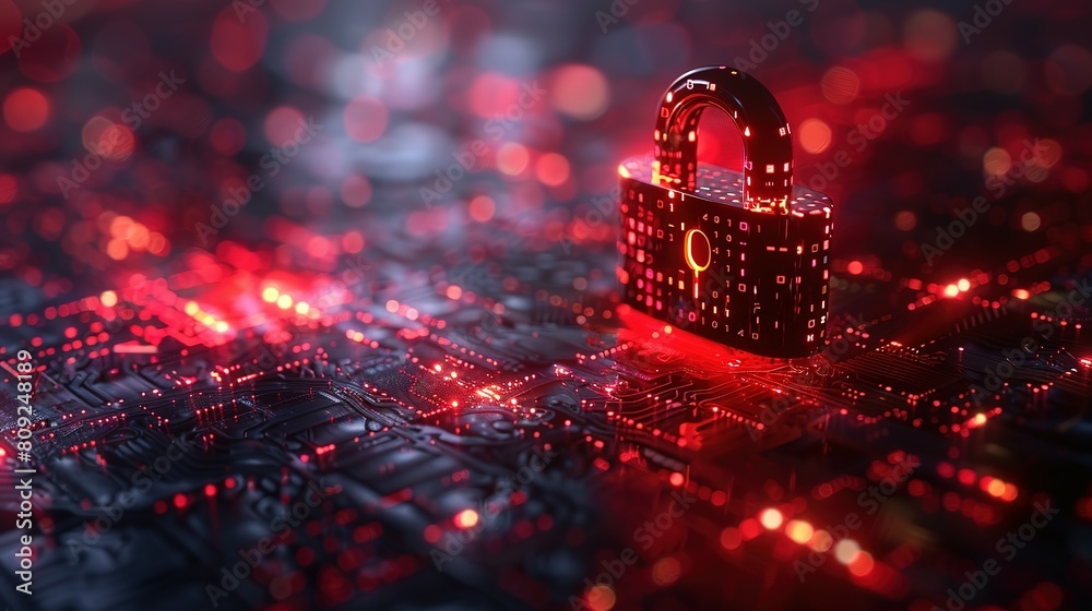 The watermark will not be included on Wall mural.: Cyber security concept - digital padlock on abstract cyber security with binary code