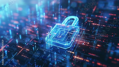 Wall mural cyber security concept. digital padlock on abstract cyber security with binary code