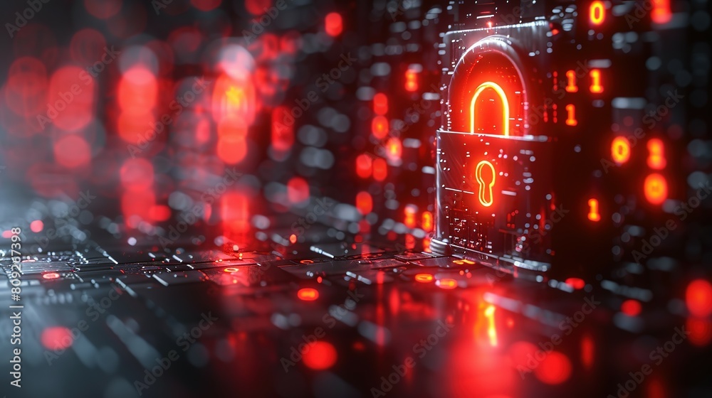 Cyber security concept - digital padlock on abstract cyber security with binary codeWall mural