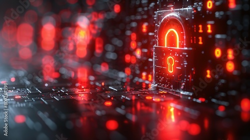 The watermark will not be included on Wall mural.: Cyber security concept - digital padlock on abstract cyber security with binary code