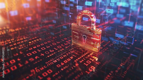 Wall mural cyber security concept. digital padlock on abstract cyber security with binary code