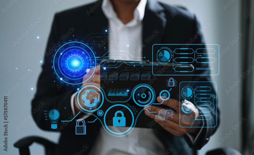 Wall mural cyber security data protection business working on compute intelligenc digital tablet global network - Wall murals Wall mural cyber security data protection business working on compute intelligenc digital tablet global network - Wall murals