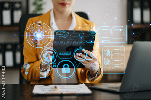 Wall mural cyber security data protection business working on compute intelligenc digital tablet global network - Wall murals Wall mural cyber security data protection business working on compute intelligenc digital tablet global network - Wall murals