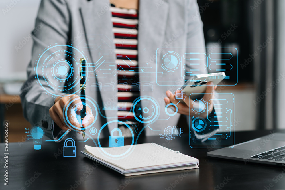 Wall mural cyber security data protection business working on compute intelligenc digital tablet global network - Wall murals Wall mural cyber security data protection business working on compute intelligenc digital tablet global network - Wall murals