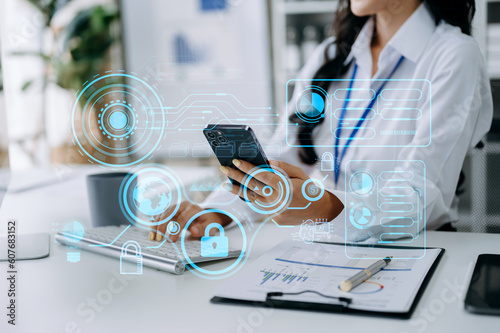 The watermark will not be included on Wall mural.: Cyber security data protection business working on compute intelligenc digital tablet global network