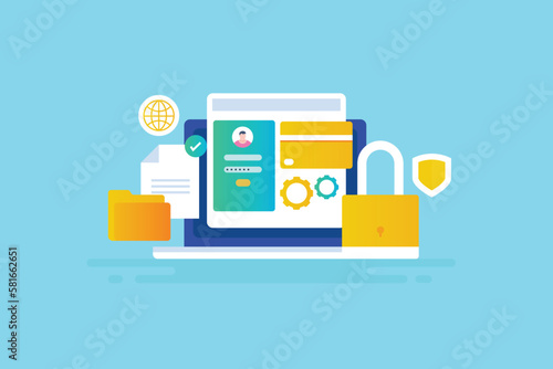Wall mural : Cyber security data protection laptop computer network system, file document secure online database,