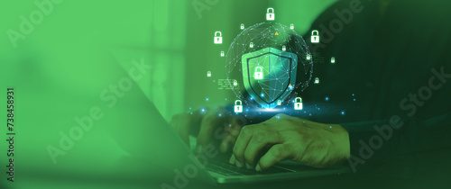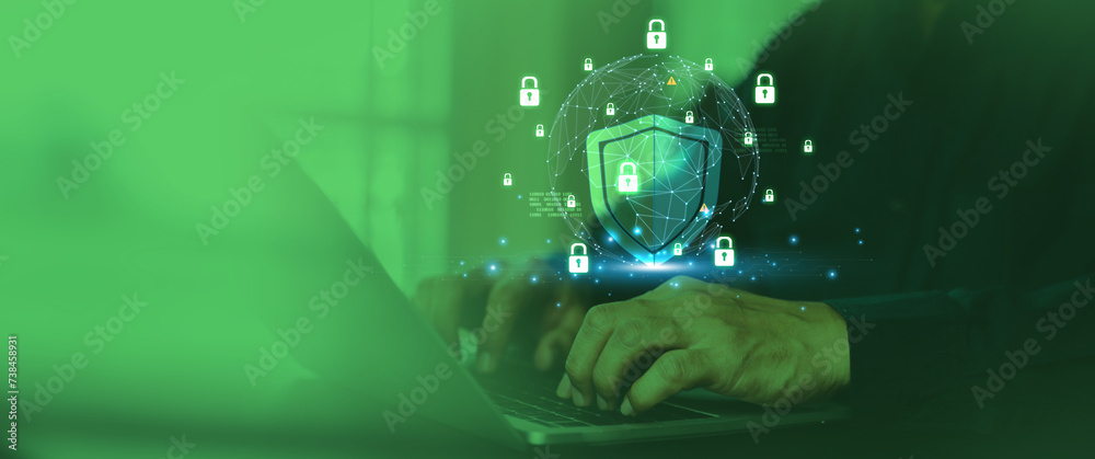 Wall mural : Cyber security data protection online computer network and personal privacy user access key protect