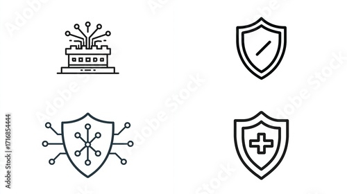 Wall mural cyber security icons protection of data and infrastructure with shields and network symbols