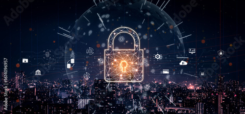 Wall mural cyber security safeguards data and systems. cyber security uses ai, digital security protects cloud, - Wall murals Wall mural cyber security safeguards data and systems. cyber security uses ai, digital security protects cloud, - Wall murals