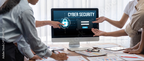 Wall mural : Cyber security system on computer screen protect private information brisk from hacker and cyber att