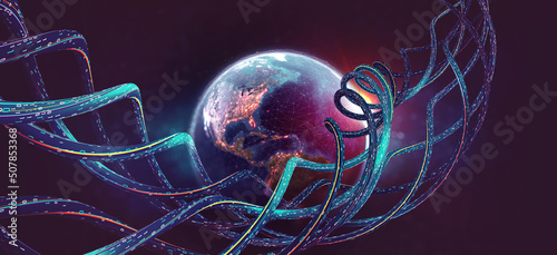 Cyber space of outer orbits - information flows of the digital universe - 3d illustration of a planet Wall mural