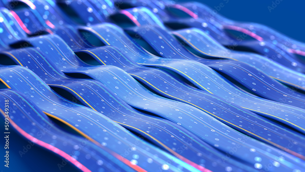 The watermark will not be included on Wall mural.: Cyber stream 3d illustration, data field, information flow, big data, binary code linear concept