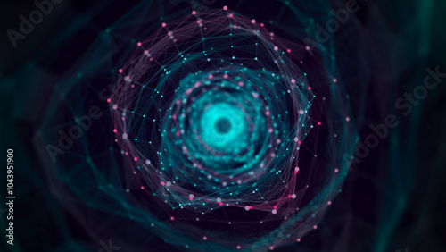 Wall mural cyber tunnel consisting of moving glowing points. futuristic infinite space background. concept of d