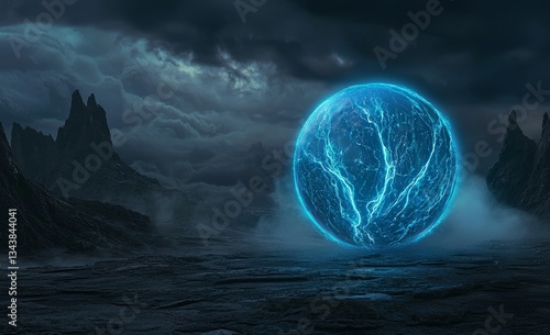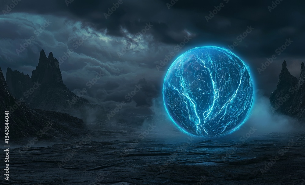 The watermark will not be included on Wall mural.: Cyberpunk aesthetics and futuristic visualization blend together in a cyber sphere of data networks,