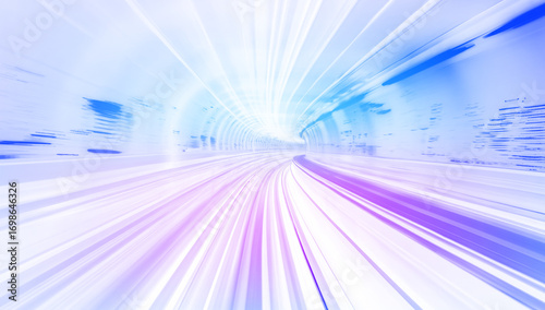 The watermark will not be included on Wall mural.: Cyberpunk light trails in motion or slow shutter effect - neon stripes in the form of drill, turns an