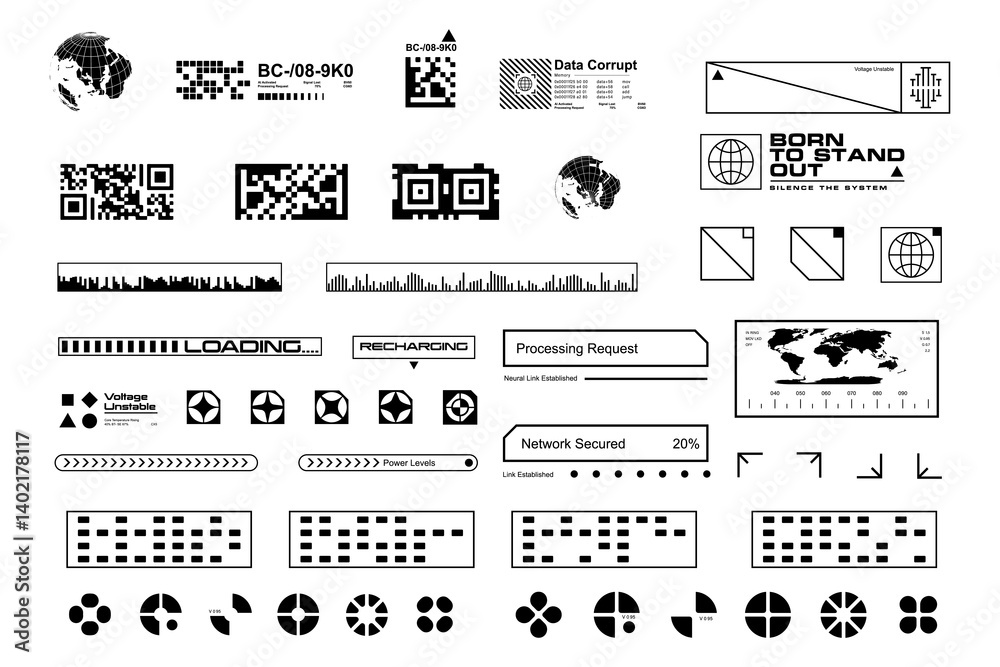 The watermark will not be included on Wall mural.: Cyberpunk sci-fi digital interface elements for design and technology