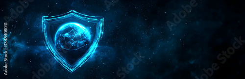 Wall mural cybersecurity and data protection concept with a digital shield symbol on a blue technology backgrou - Wall murals Wall mural cybersecurity and data protection concept with a digital shield symbol on a blue technology backgrou - Wall murals
