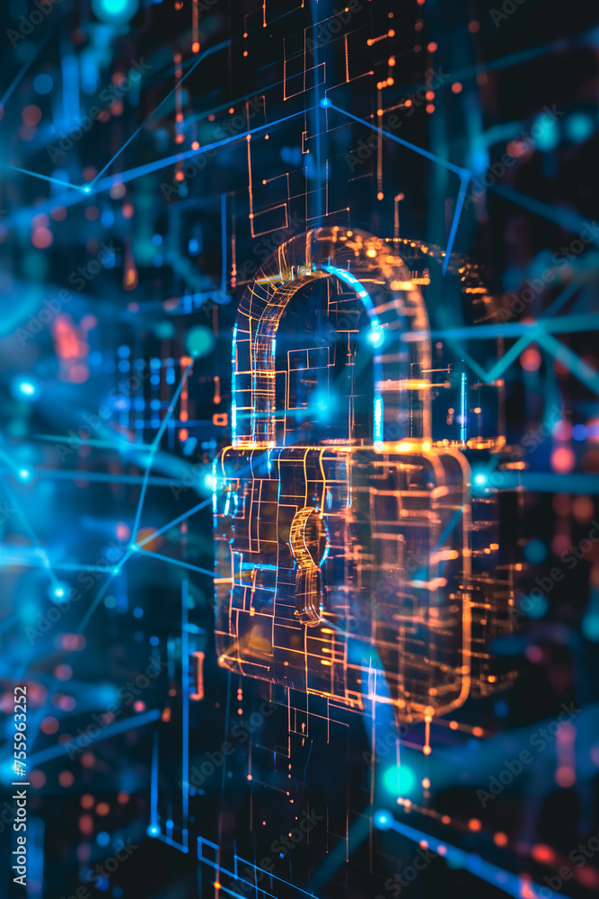 Cybersecurity and data protection concept - creative background of network security and cyber technolWall mural