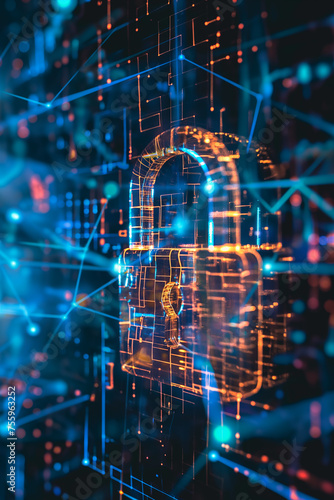 Wall mural cybersecurity and data protection concept. creative background of network security and cyber technol