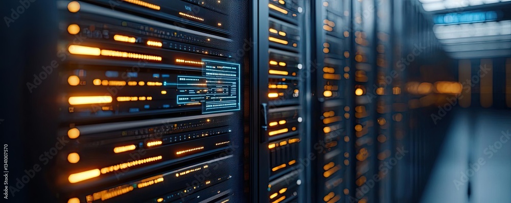 Wall mural cybersecurity and technology in network security concept. high-tech data center with illuminated ser - Wall murals Wall mural cybersecurity and technology in network security concept. high-tech data center with illuminated ser - Wall murals