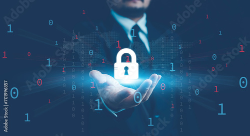 Wall mural cybersecurity concept, cybersecurity and privacy concepts to protect data. lock icon and internet ne