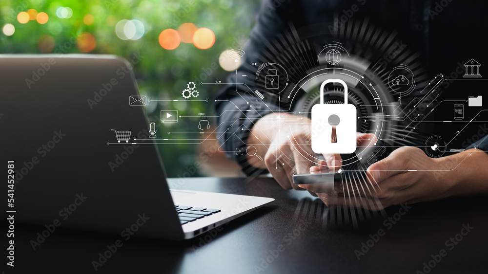 Wall mural cybersecurity concept, padlock icon and internet technology network, secure encryption of user's per - Wall murals Wall mural cybersecurity concept, padlock icon and internet technology network, secure encryption of user's per - Wall murals