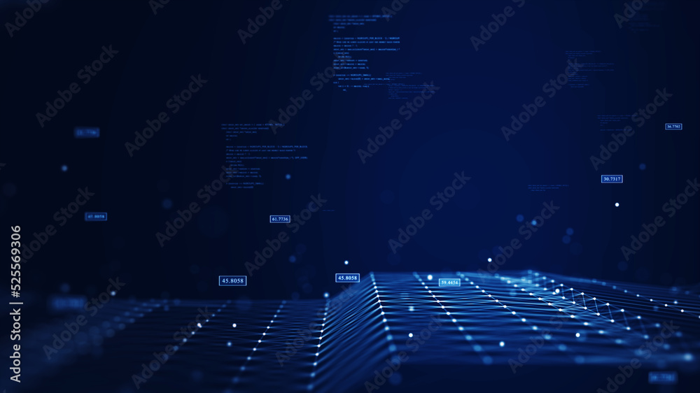Wall mural cybersecurity digital information technology concept. polygon binary code connected on dark blue bac