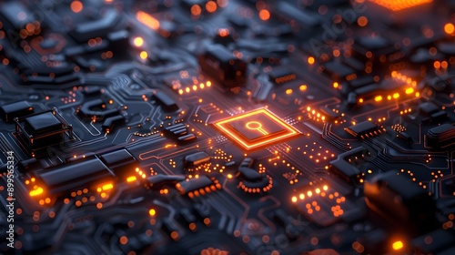 Wall mural cybersecurity interface with glowing lock and futuristic circuit patterns - Wall murals Wall mural cybersecurity interface with glowing lock and futuristic circuit patterns - Wall murals